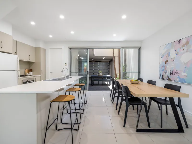 The heart of the home is the light-filled living and dining area, thoughtfully designed for both everyday living and entertaining. The functional kitchen offers ample bench and storage space, seamlessly connecting to the living zones to create an inviting and practical environment.