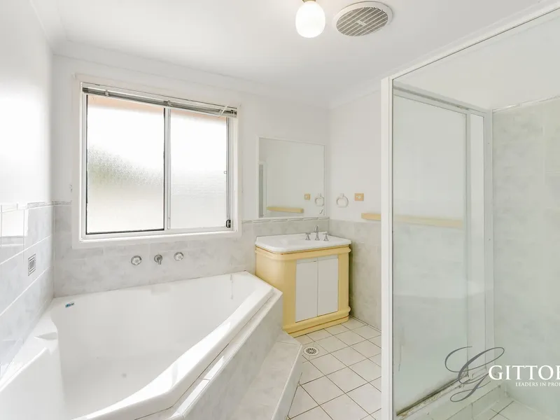 The main living zone is filled with natural light, enhanced by contemporary flooring and the home's sunny orientation. A second living area at the front of the home provides flexibility as a formal lounge or media room, while a dedicated office downstairs creates an ideal work-from-home setup. An internal laundry and excellent storage further support practical family living.