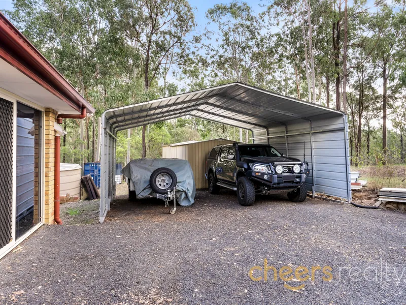 - Carports for 5 vehicles and 2 massive sheds