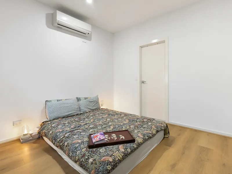Master bedroom featuring an ensuite and walk in robe and split system.