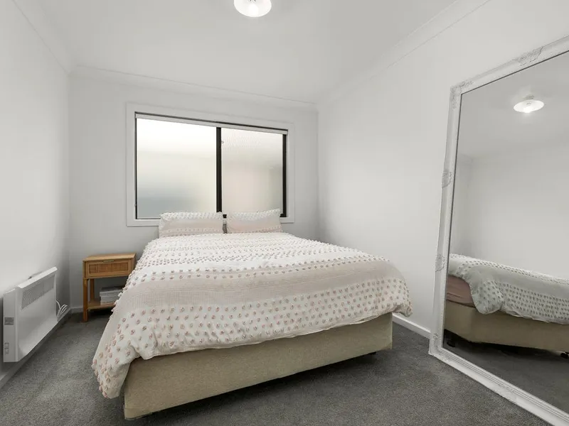 Step outside to a low-maintenance courtyard, perfect for relaxing or entertaining with minimal upkeep. A double garage provides secure parking and additional storage space.
