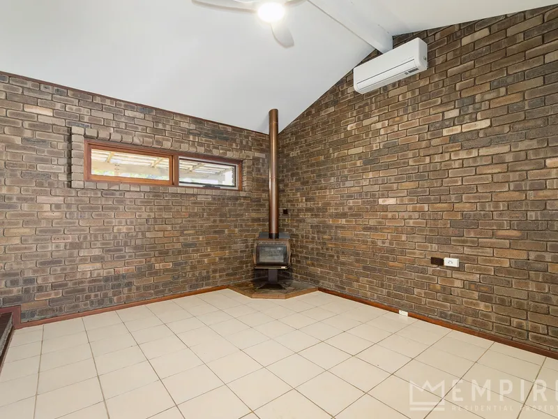 Step inside to a welcoming living area featuring a charming fireplace, adding warmth and character to the home. Newly installed air conditioning units to both the lounge and master bedroom ensure year-round comfort and recently installed ceiling fans in the secondary bedrooms for added airflow.