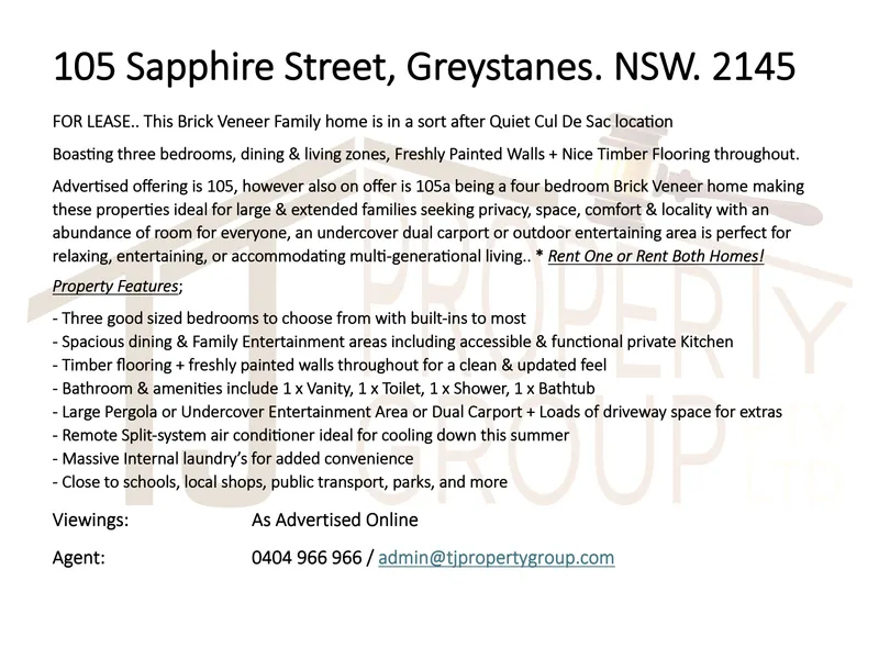 3-bedroom House for rent at 105 Sapphire Street, Greystanes, NSW 2145