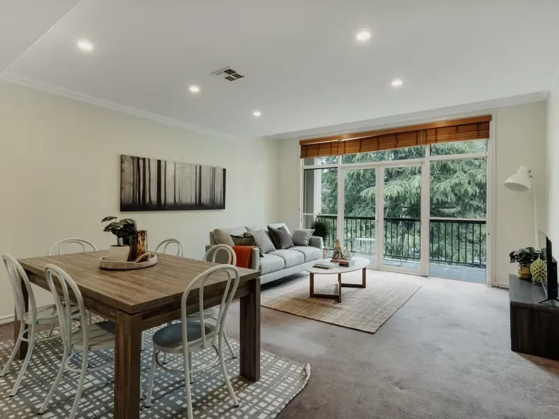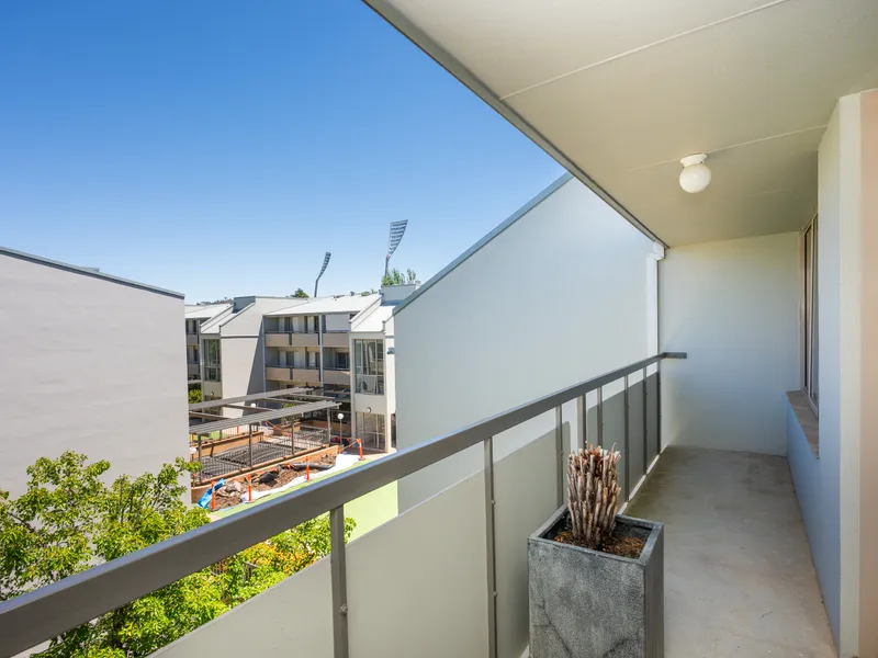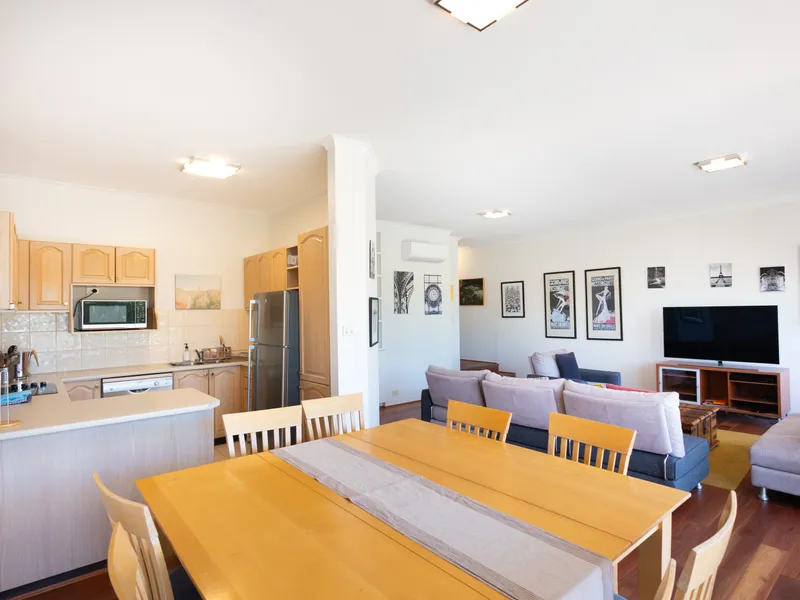 Perched on the top floor and enjoying a desirable north-facing aspect, this light-filled home is designed for effortless living. The spacious layout features an open-plan living and dining area, complemented by two private balconies perfect for relaxing or entertaining.