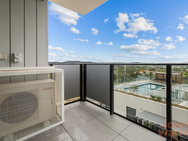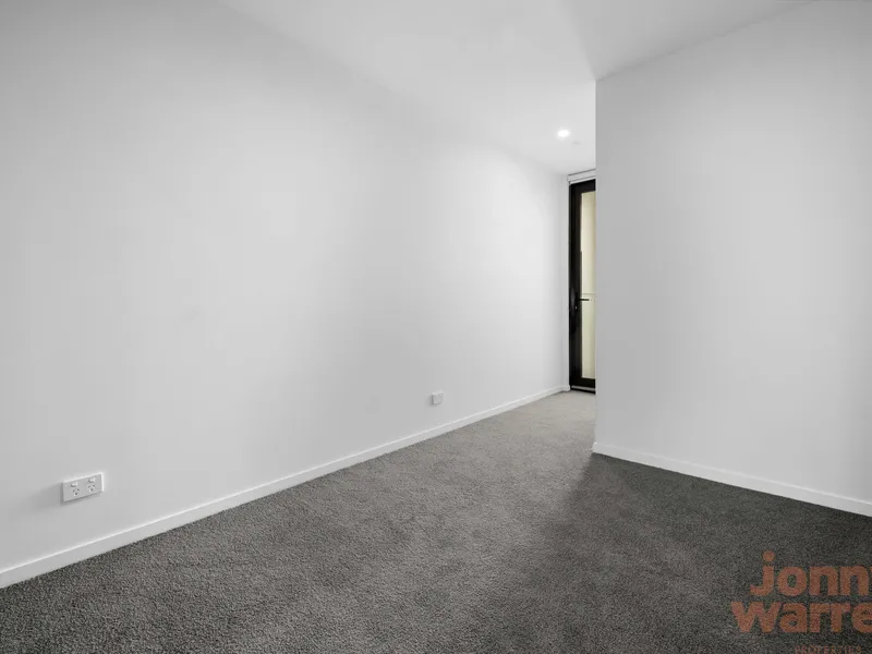 The open-plan living and dining area is bright and spacious, complemented by large windows and direct access to a private balcony - perfect for enjoying fresh air and district views. The contemporary kitchen features stone benchtops, ample cabinetry, quality appliances, and a dishwasher, combining practicality with a sleek finish.