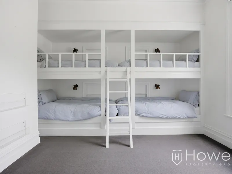 Accommodation is exceptional, with four huge bedrooms. The primary bedroom has dual access to a beautifully appointed bathroom with underfloor heating, and all bedrooms include built-in wardrobes and plush carpeting. Bedroom four is a standout for families, offering two sets of built-in bunks. A second family bathroom, also with underfloor heating, includes a full-size bath and separate shower.