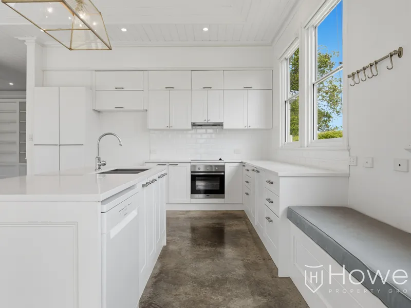 The kitchen would sit perfectly in the pages of a Home Beautiful magazine, with a generous island bench doubling as a casual dining spot, perfect for keeping the cook company. Quality appliances, including a dishwasher, make everyday living easy.