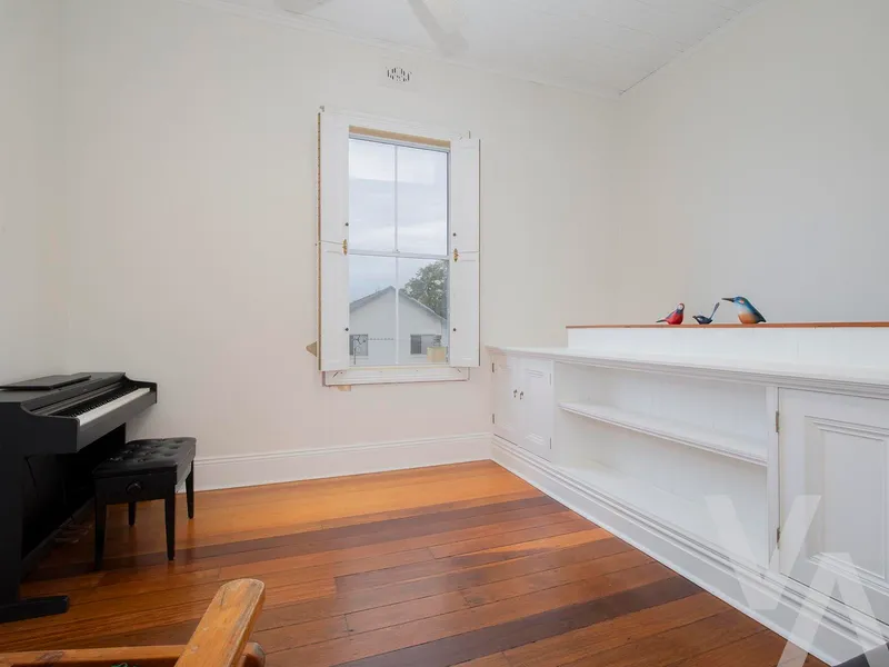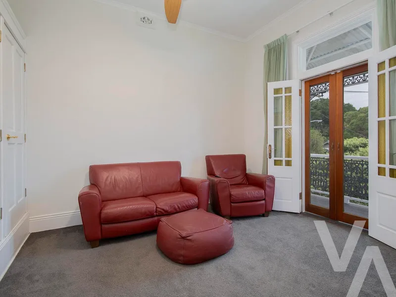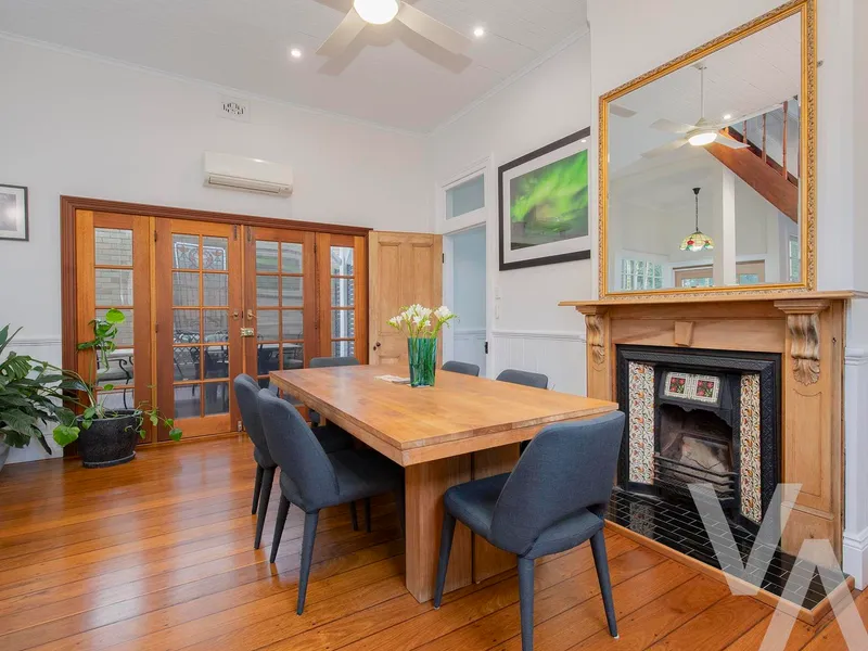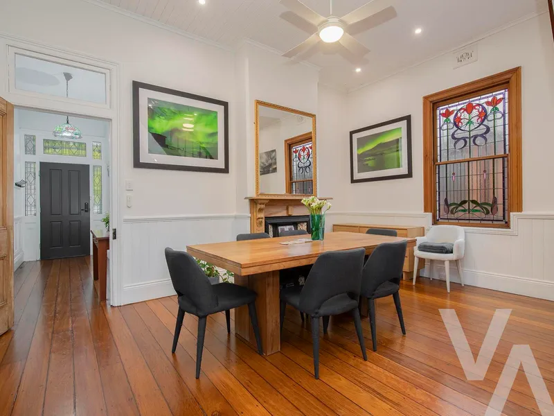 Rich in period charm, the residence has been thoughtfully enhanced with ducted air conditioning to the upper level and discreetly placed split systems downstairs, ensuring seamless comfort throughout every season. A fully integrated attic offers secure, concealed storage, allowing the home to maintain a refined and uncluttered aesthetic.