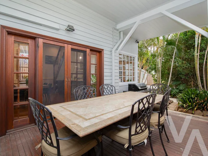 Entertain effortlessly in the designer outdoor setting, featuring elegant travertine tiling and a timber deck that flows directly from the kitchen and dining spaces, creating a seamless indoor–outdoor experience ideal for both intimate gatherings and relaxed evenings.