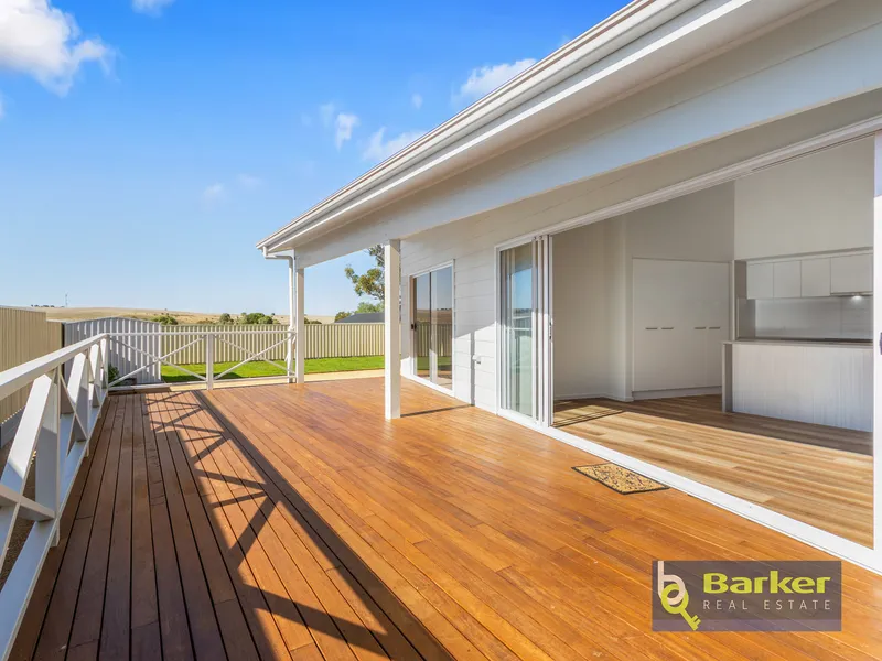 Pretty as a picture, this brand-new home offers modern comfort and stunning outlooks. Upon entering the home you are welcomed by raked ceilings and a neutral colour tone flooding the area with natural light and a sense of space. The generous size open plan living dining area are accompanied with the sleek kitchen featuring 90cm oven and induction cooktop, dishwasher and plenty of storage. The large island bench allows entertaining to be seamless and the sliding doors that open up the home onto a large timber deck allowing the views to be enjoyed.