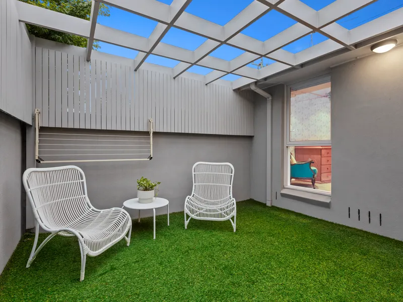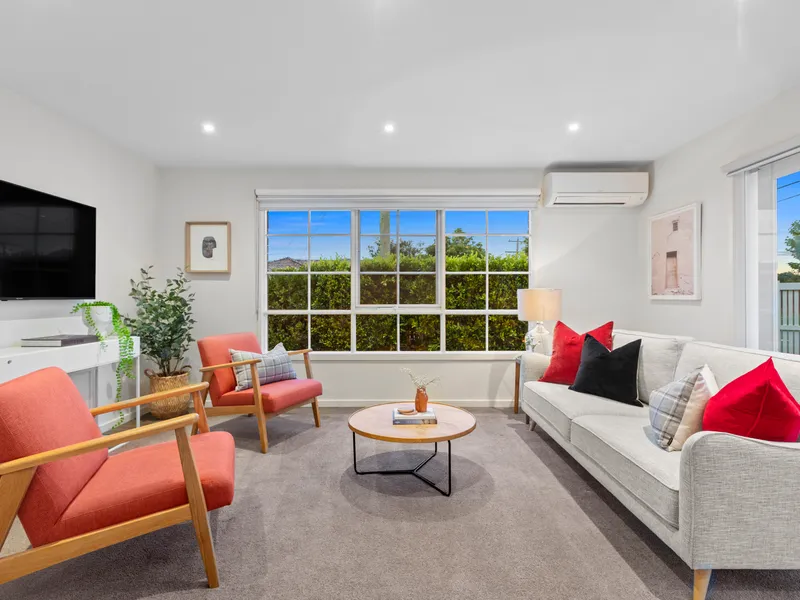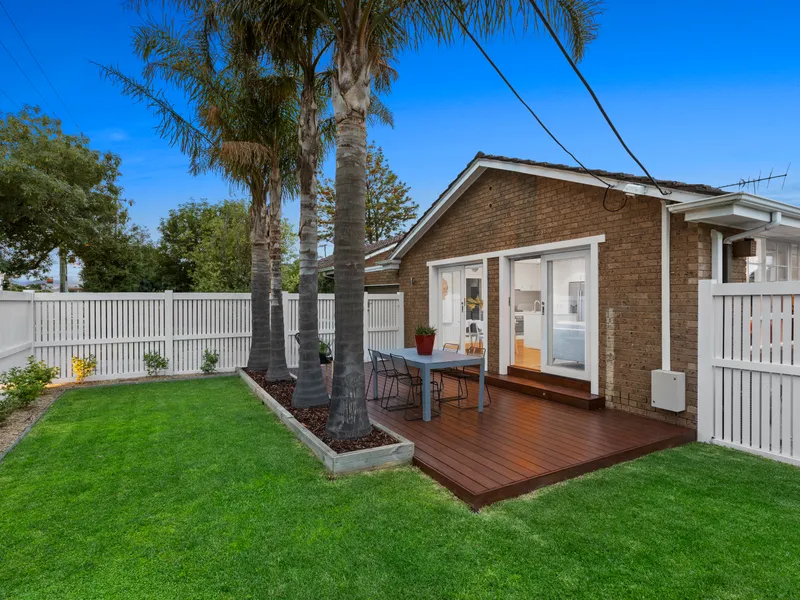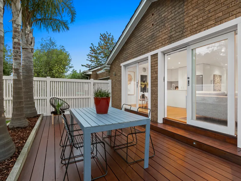 Step behind impressive corner frontage (entry from Monamie Avenue) this stylish two bedroom single-level townhouse catches all-day sun with airy open-plan living flowing out to decking through dual sets of glass doors, big robe-fitted bedrooms with outlooks to the garden or a bonus second courtyard… and a stylishly fenced landscaped and lawned garden wrapping around to north-west sun!