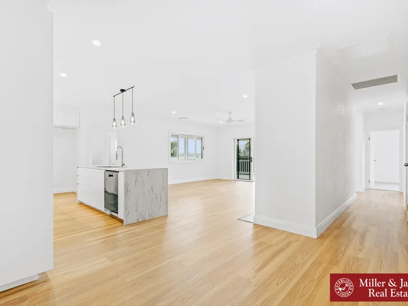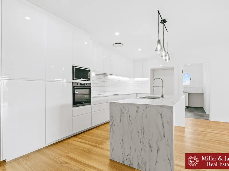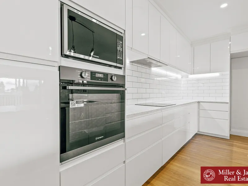 • Generous kitchen with island bench, electric cooking, dishwasher, and ample storage.