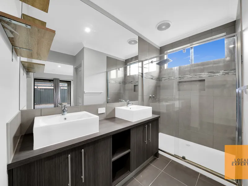 The master bedroom includes a private ensuite and walk-in robe, while the two additional bedrooms are well-sized and fitted with built-in robes, providing excellent storage for families or shared living.