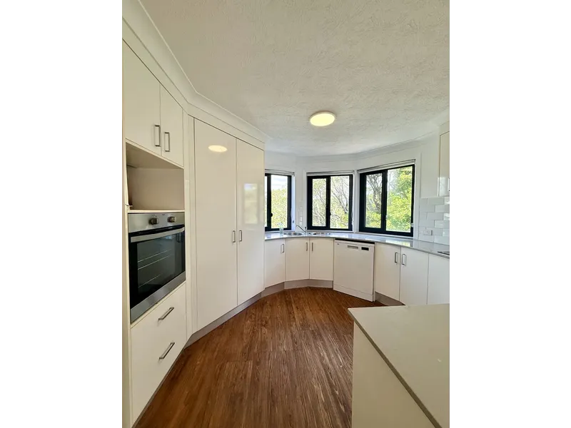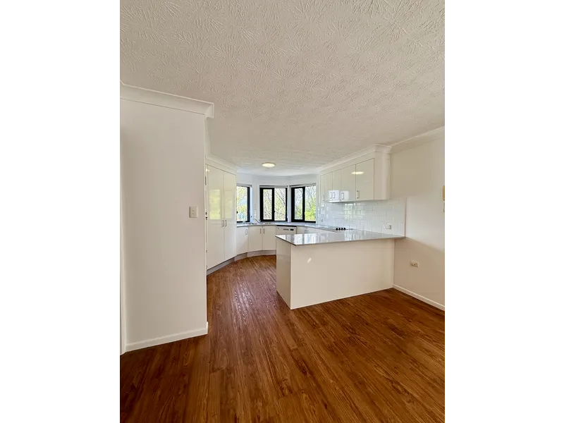 The apartment is light-filled and well-proportioned, with open-plan living and dining flowing out to a large tiled balcony—ideal for entertaining or unwinding amongst the greenery. The kitchen is modern and practical with plenty of storage, quality appliances and a standout curved window that brings in beautiful natural light.