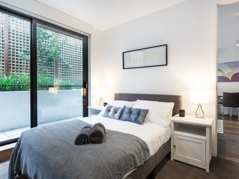 This ground floor apartment comprises the following 2 bedrooms, master with walk in robe and ensuite, the other bedroom has a built in robe, central bathroom, kitchen with gas and electric cooking appliances, dishwasher and microwave which looks over the meals and living areas and European laundry. Additional extras includes access to a small easy to maintain paved courtyard, split system for heating and cooling as well as 1 car stacker that is suitable for a small to medium car. This property also is semi furnished with the following: