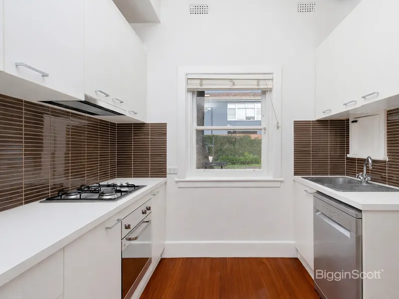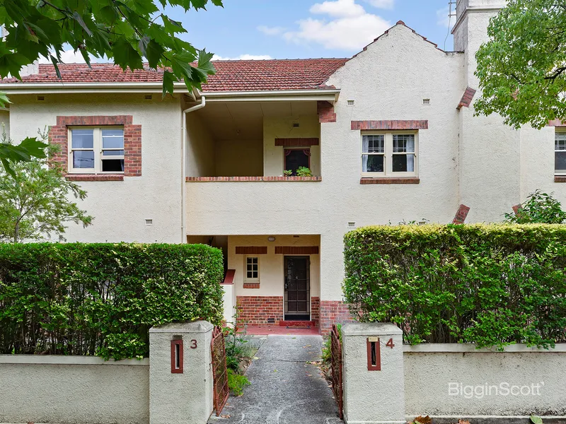 This delightful 1930's, freshly painted and updated apartment can be found on the ground floor, set among stunning green gardens. - Two large double bedrooms, with built in robes and timber floors; master with garden views - Renovated kitchen with stainless steel appliances, gas cooking, stone bench tops and dishwasher - Huge sunny lounge with floorboards and separate dining area - Entrance hall with large storage cupboard with window could be used as a small study - Modern central bathroom with walk up shower - Communal laundry room BYO machine shared with only 1 other apartment - Large luscious shared garden - Off street parking for 1 car; street parking permits available from the council Set in a tranquil, tree lined Hawthorn location and only a short distance to Auburn Rd & Glenferrie Rd shopping precinct, located just around the corner of Scotch College, and within Auburn High School & Canterbury Girls Secondary College School Zones. Viewing is a must!