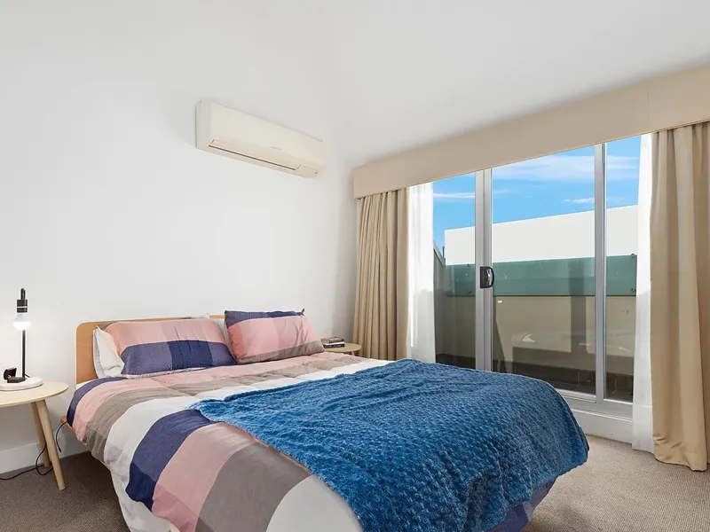 - 2 spacious carpeted bedrooms with built-in wardrobes, the master with split system, second balcony, ensuite, electric heating, and attic storage
