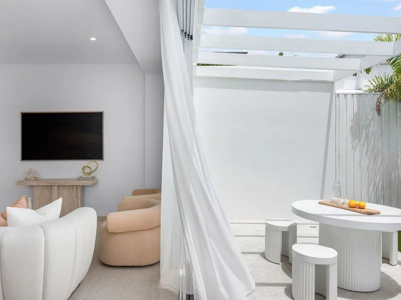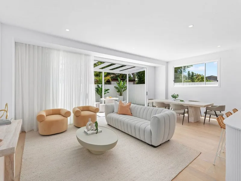A striking neutral aesthetic is bathed in an abundance of natural light streaming in from the soaring void and banks of floor to ceiling glass that seamlessly transition the indoor living to the huge outdoor patio area so you can entertain guests in style.