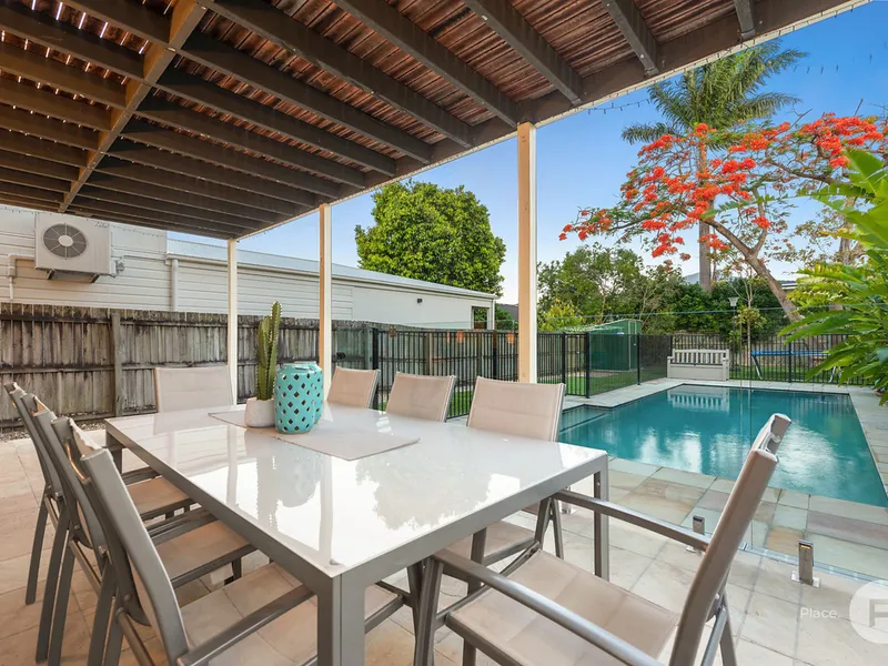 Enjoying refreshing river breezes and an east-facing-rear aspect, this four-bedroom family has been lovingly renovated and boasts a resort style pool and a modern, functional layout with stylish living spaces.