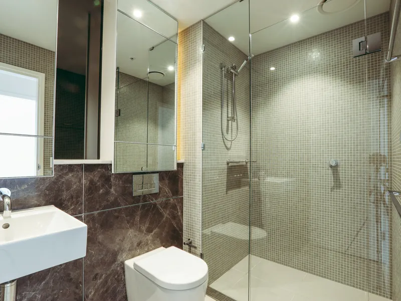 Large glass sliding doors open onto the generous balcony that offers plenty of space for alfresco entertaining with a pleasant harbour view.