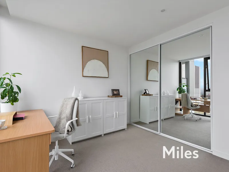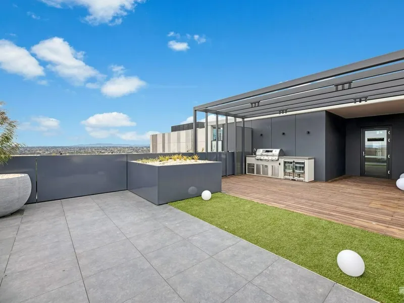 Comprising two carpeted bedrooms both with built in robes (master with ensuite) and the sleek kitchen (with stone benchtops, ample storage, and stainless steel appliances) are configured to enjoy the panoramic outlook. Experience the building’s exclusive rooftop area, where you can laze about with friends on the rooftop garden’s daybeds or watch a movie in the boutique cinema before firing up the communal BBQ for a sunset dinner as the stars come out to play.