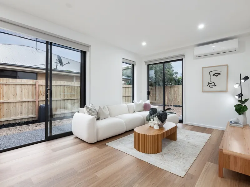 Beautifully appointed three bedroom townhouse that can be found close to shops and transport. Downstairs features open plan living to kitchen/dining with view to rear courtyard, master bedroom including built in robes and ensuite. Stairs lead up to two good sized bedrooms with built-in-robes and central bathroom with separate shower, bath and toilet.