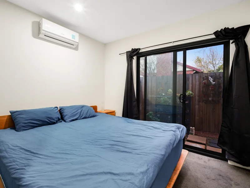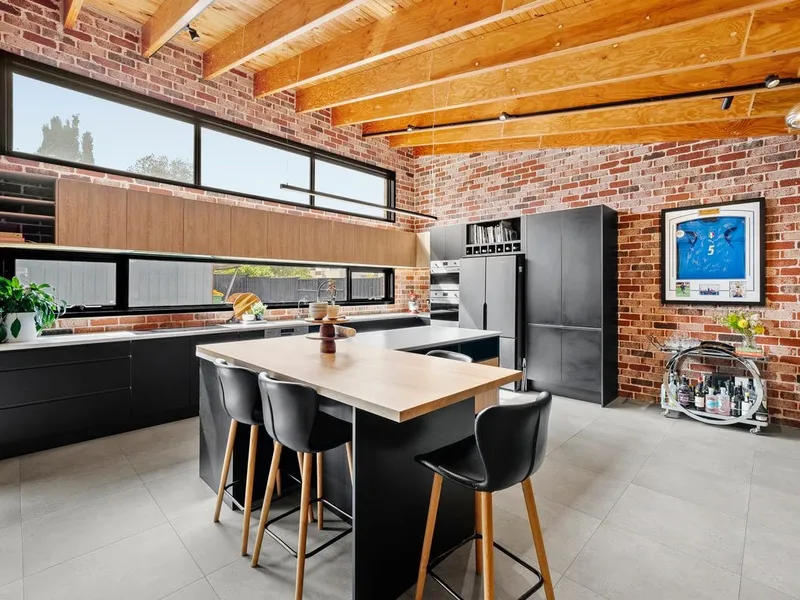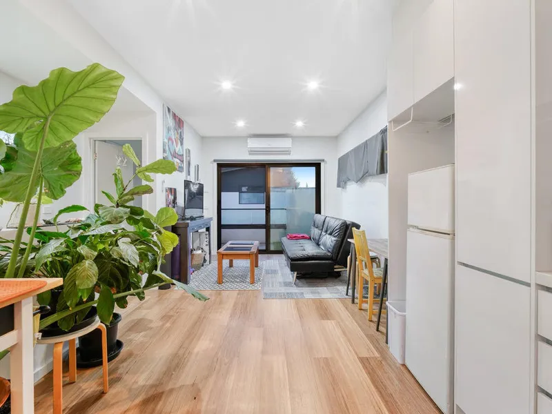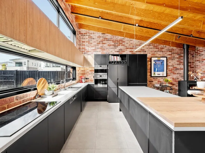 Stylish Interiors: Solid Tasmanian Oak floorboards enhance the ground-floor lounge, which features stacker doors leading to the secluded garden, creating an ideal space for entertaining.