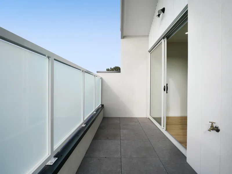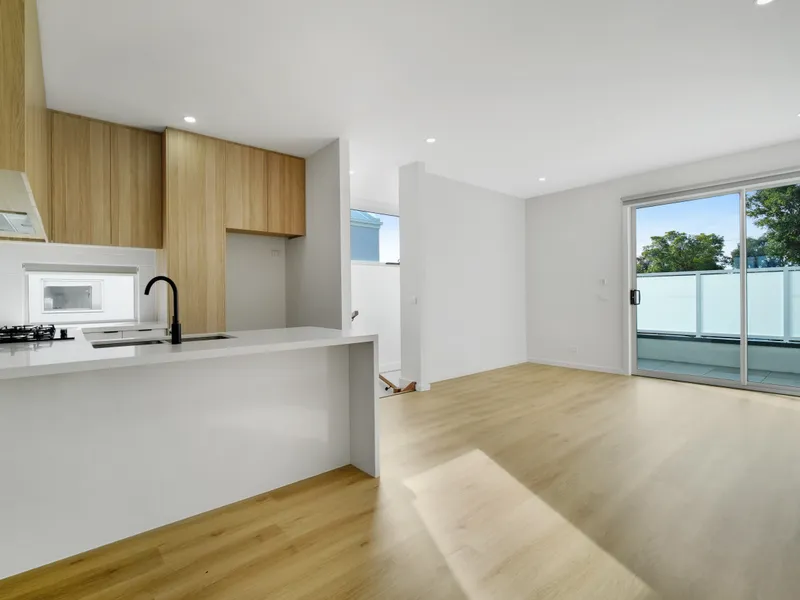 The first bedroom is conveniently located on the ground floor, while the second is privately tucked away upstairs. The light-filled open-plan living area boasts beautiful timber flooring and a sleek, fully equipped kitchen featuring stainless steel appliances. A separate laundry and a private entertainer's courtyard further elevate the home's practicality.