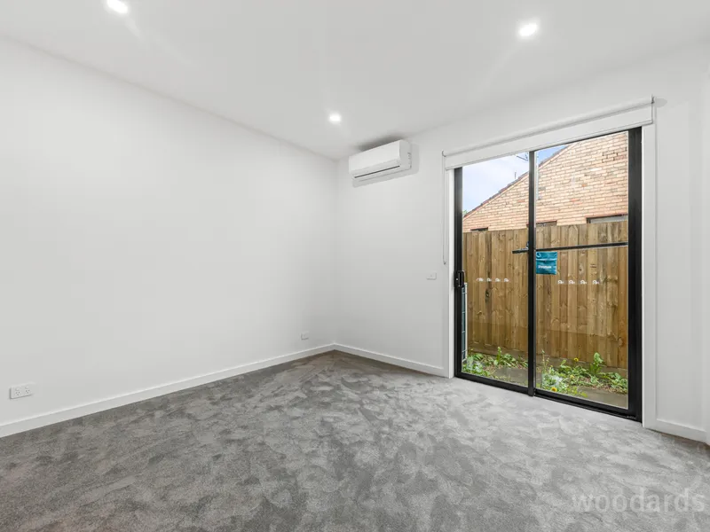 Discover the epitome of contemporary living in this pristine, near-new two-bedroom townhouse. Nestled at the forefront of a charming block of four residences, this immaculate property is ready for you to move in and relish. As you step inside, you'll be greeted by two generously sized bedrooms, each adorned with plush carpeting, built-in wardrobes, and individual split-system heating/cooling units, ensuring year-round comfort and tranquility.