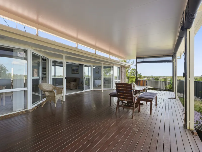- Oversized timber entertaining deck with all-weather blinds
