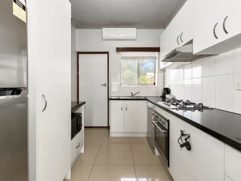 - Well-appointed kitchen with inbuilt oven and gas cooktop with ample bench and storage space