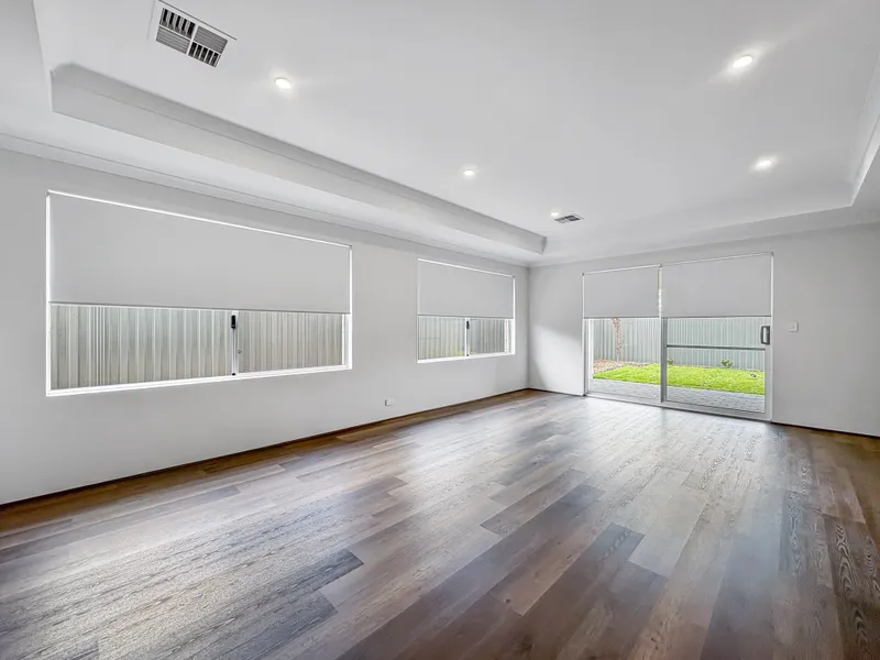 - Carpeted rooms and hybrid timber flooring through passages/living area