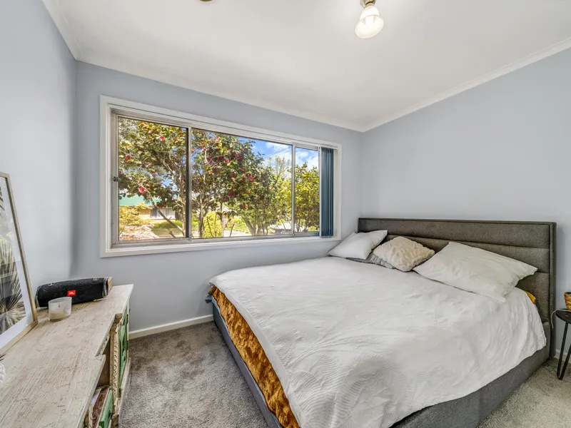 The renovated bathroom has a fresh, modern appeal with a separate shower and a bath for long soaks. Reverse cycle air conditioning units to the meals area and main bedroom provide a home of year-round comfort. The spacious backyard has a large lawned area for family fun, bordered by mature fruit trees creating privacy and shade.