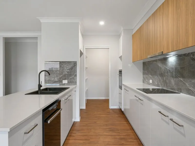 The centrally located kitchen is well equipped with an electric cooktop, wall oven, rangehood and dishwasher, complemented by a breakfast bar, double bowl sink and ample bench and cupboard storage to suit family needs.