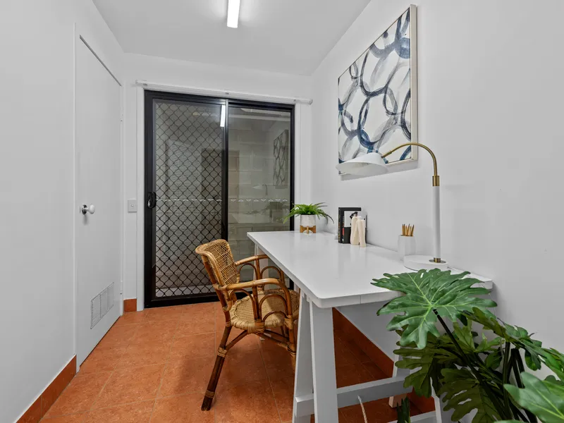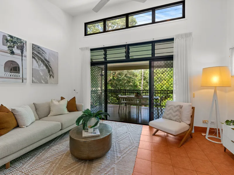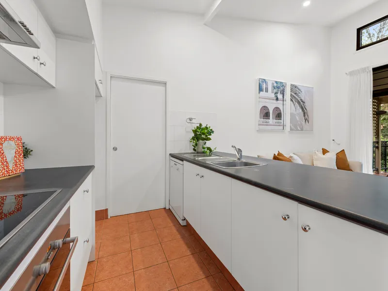 The kitchen, featuring stainless steel appliances, electric cooktops, ample storage and a dark benchtop, overlooks the expansive living room. A study area adds a touch of sophistication whilst a private balcony on all three levels ensures excellent ventilation and a seamless connection to the outdoors. It’s on these balconies where you’ll experience the epitome of peace as you take in the panoramic views of hinterlands-like greenery which evoke a sense of living in a treehouse. Encapsulating a holiday-like escape in a remarkably convenient inner-city location, don’t miss out on this fabulous residence where every detail has been meticulously curated for a life of comfort.