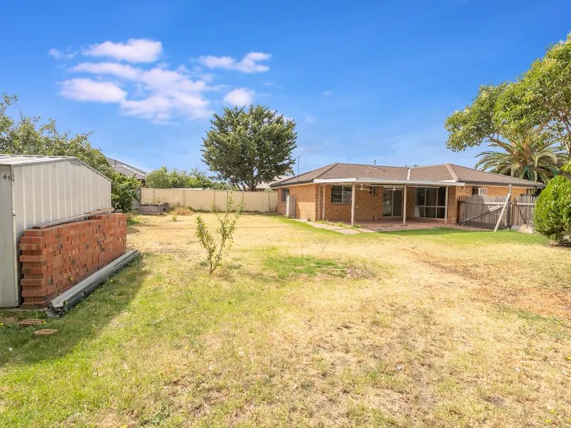 A spacious formal lounge at the front of the home leads to the open-plan kitchen, meals and family area forming the heart of the home. The well-appointed kitchen includes a dishwasher, along with generous bench and cupboard space and opens to a covered courtyard providing the perfect place to enjoy your morning coffee. The large backyard with paved area provides plenty of space for the children to play and to enjoy the sun.