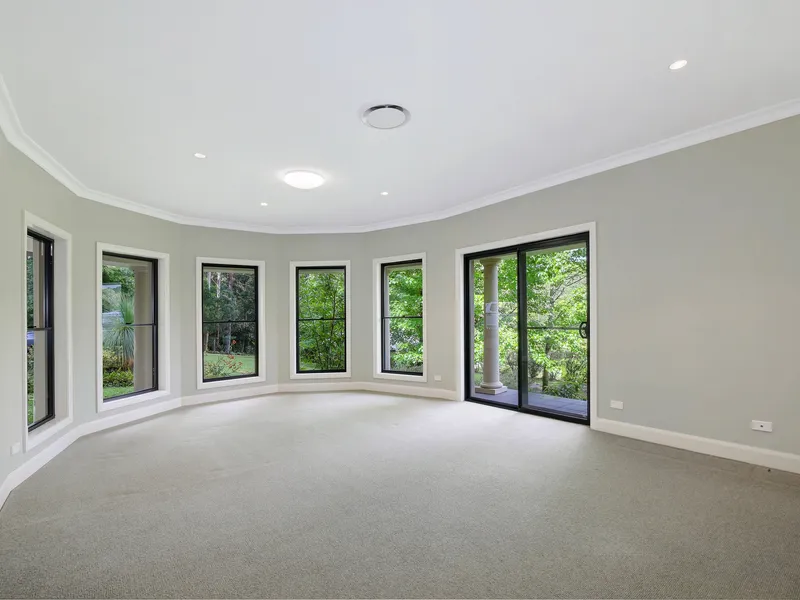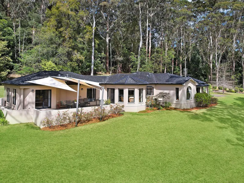 The home includes 4 bedrooms, a walk-in-wardrobe and ensuite to the main bedroom, formal lounge and dining rooms with a built-in bar, open plan living and casual dining area with access to a paved alfresco area overlooking the manicured grounds.