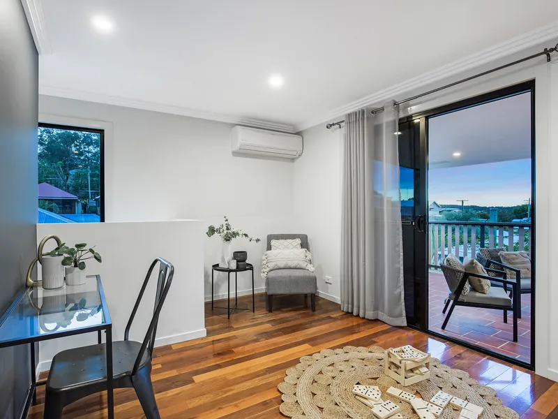 Ascend to the second level and find four spacious bedrooms. The master bedroom is air-conditioned and features a huge walk in robe and brand new ensuite. The additional bedrooms all have built in cupboards, ceiling fans and gorgeous hardwood timber floors which span the entire level of the home.