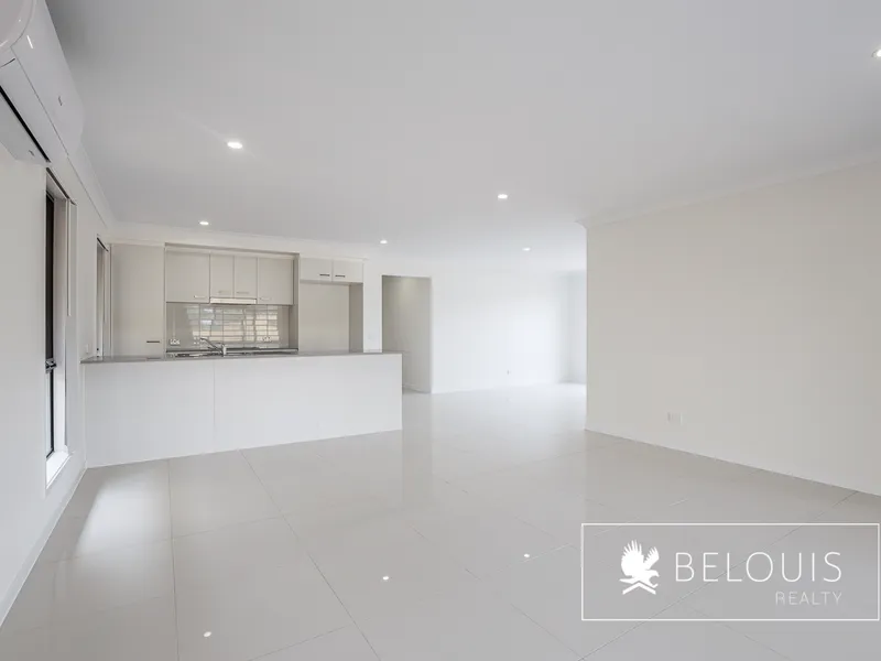 - Open plan kitchen, dining, and family room with air-conditioning
