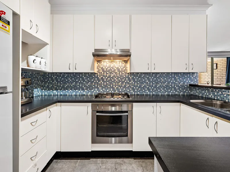 - The kitchen is equipped with modern gas cooking facilities and elegant granite benchtops, combining functionality with a touch of sophistication.