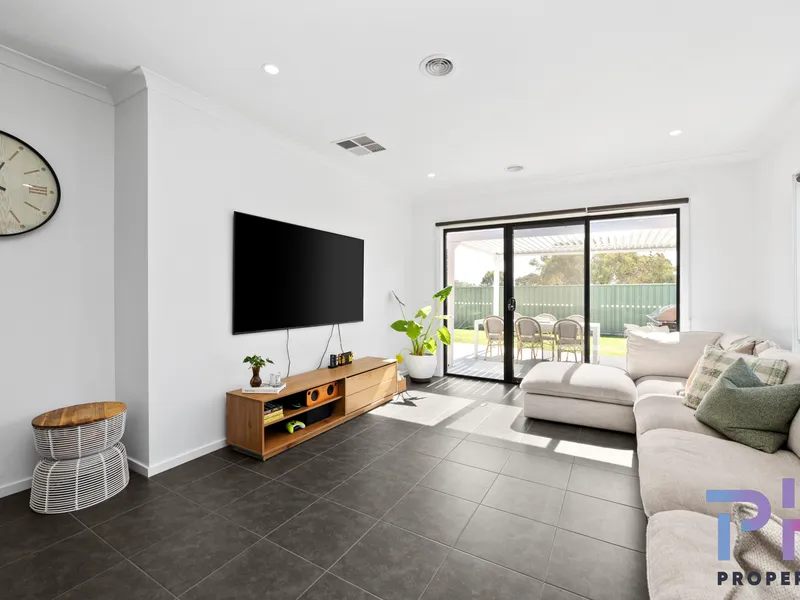 This four-bedroom home provides a functional layout with the main bedroom including a walk-in robe and ensuite. The remaining bedrooms are fitted with built-in robes and are serviced by a central bathroom.