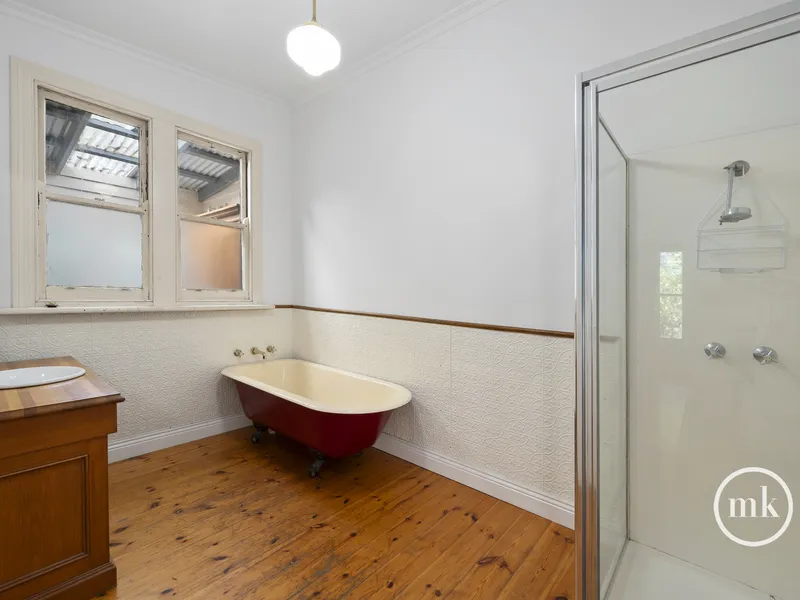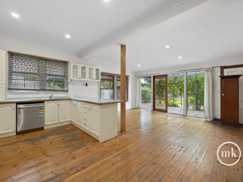 The gas kitchen is a chef's dream with a dishwasher, generous bench and cupboard space, perfect for entertaining. The gorgeous separate rear study can serve as an art studio or a living space for multi-generational living, adding versatility to this charming home. Don't miss out on this unique opportunity!