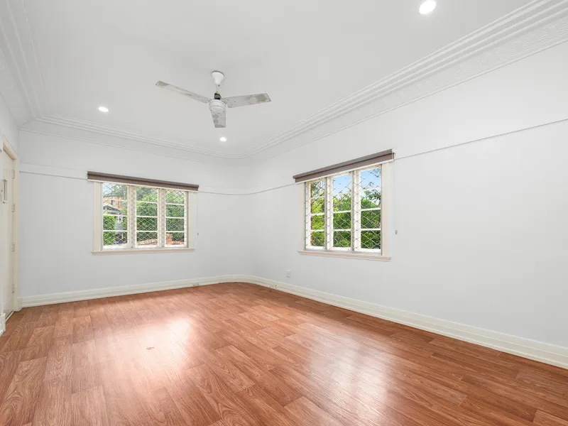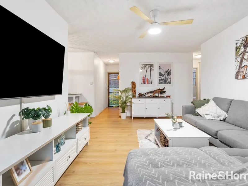 The light & airy open plan living area flows through to dual balconies for a lovely cross breeze. This area also features air-conditioning and ceiling fans.