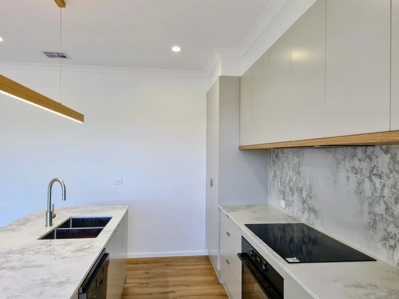 The heart of the home is a light-filled, open-plan kitchen, lounge, and dining area designed for seamless entertaining. If you love to cook, you’ll appreciate the sleek induction cooktop and dishwasher, loads of storage which is all framed by stylish, contemporary fixtures that give the space a high-end feel.