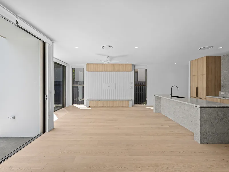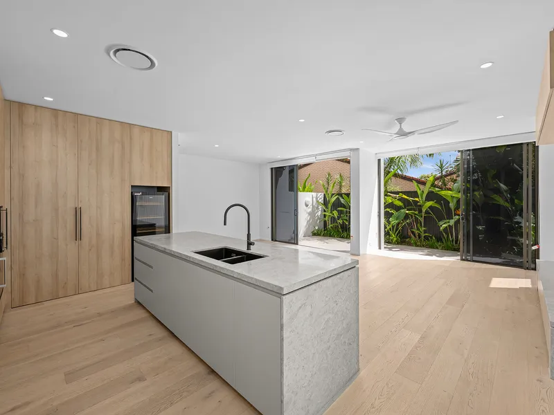 Step inside a light-filled double-storey haven of modern elegance. The open-plan living and dining areas boast soaring ceilings, bespoke cabinetry, and designer lighting, creating an airy sense of sophistication. At the heart of the home is a gourmet kitchen featuring premium stone benchtops, state-of-the-art Gaggenau appliances, an integrated fridge and dishwasher and a dedicated wine fridge-perfect for the entertainer. Expansive glass doors seamlessly connect the indoor and outdoor spaces, opening onto a private landscaped courtyard ideal for alfresco dining or relaxing amid lush greenery.