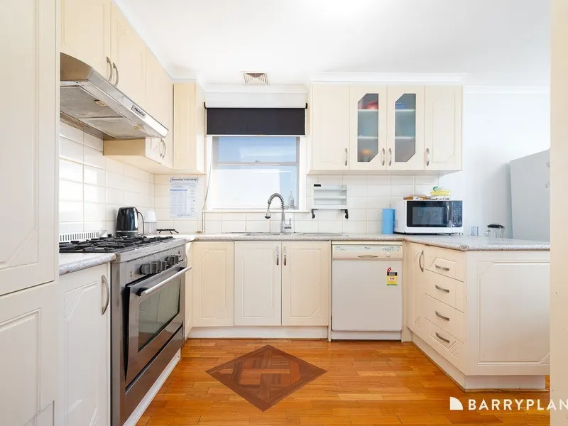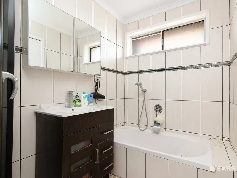 The home features three generous bedrooms, all fitted with built-in wardrobes, along with a central bathroom that includes both a bathtub and a separate shower. The light-filled living area showcases polished timber flooring, creating a warm and inviting space to relax or entertain. A functional kitchen provides ample storage, while heating and cooling ensure year-round comfort. Off-street parking is also available.