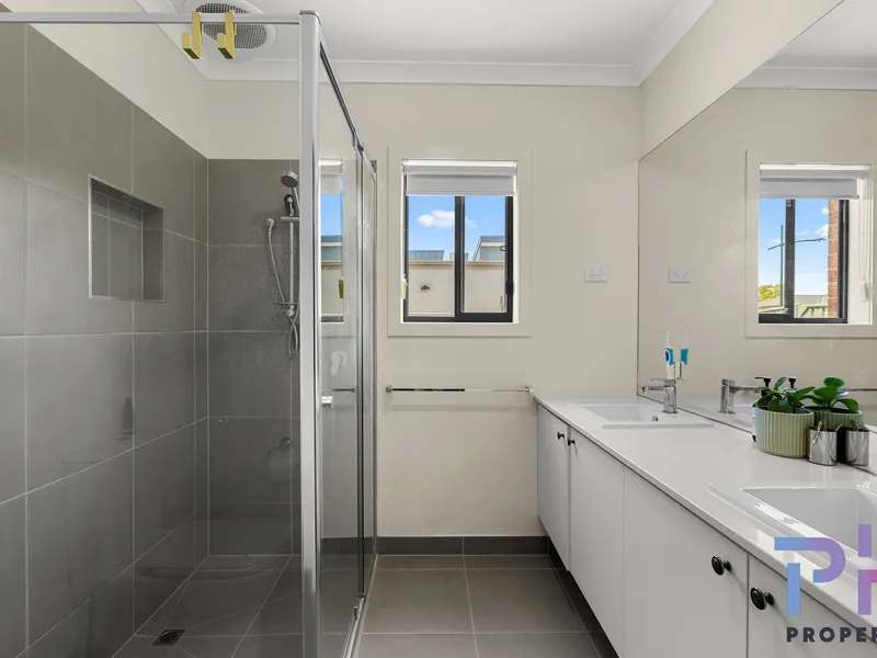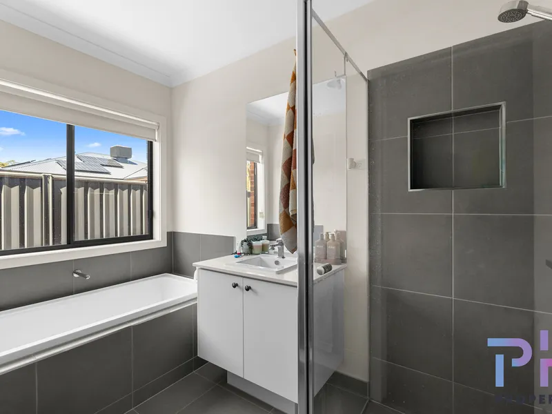 The master bedroom is positioned at the front of the home and features a private ensuite and built-in robe, while the remaining three bedrooms are generously sized and serviced by a central bathroom with separate bath and shower.