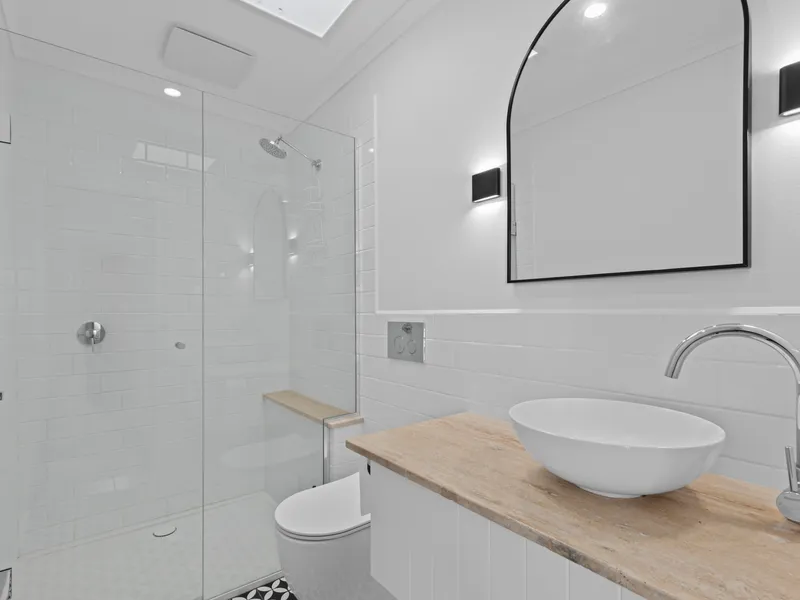 The accommodation is thoughtfully zoned, with three generously proportioned bedrooms. The luxurious master suite is a true retreat, complete with a walk-in robe, an elegantly appointed ensuite enhanced by a skylight, and direct access to a secluded private deck. The remaining bedrooms are serviced by a sophisticated central bathroom and separate WC, ensuring both comfort and practicality.