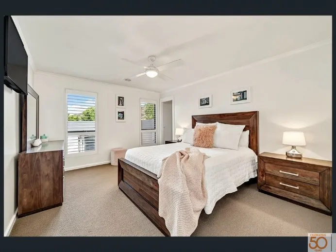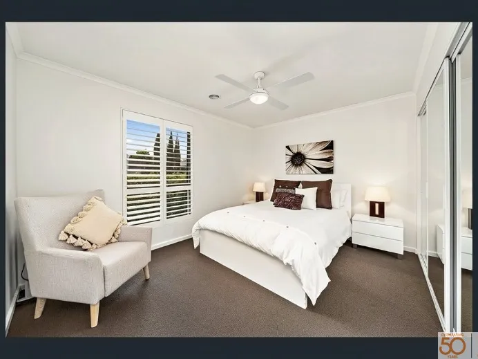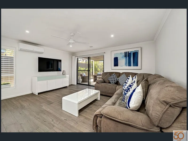 Inside, you'll find a light-filled open-plan living area finished in modern neutral tones, creating a relaxed and stylish feel. The centrally located kitchen is perfect for entertaining, featuring a large island bench, stone bench tops, double ovens, a 900mm gas cook top, and plenty of storage. It connects seamlessly to the family room, covered outdoor area, and formal living space, which opens onto a private courtyard.