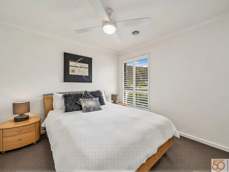 Outside, enjoy a covered entertaining deck with bistro blinds and a private, low-maintenance yard. The front courtyard provides additional entertaining space.